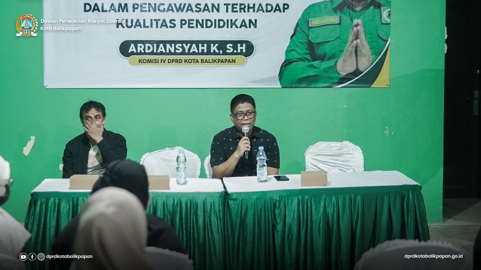 02 August, 2024 Dibaca: 640 KaliWakil Ketua Komisi IV Bapak Ardiansyah,S.H Gelar Dialog Warga bersama Masyarakat sekitaran RT 18 berdialog mengenai “ Peningkatan Partisipasi Masyarakat Dalam Pengawasan Terhadap Kualitas Pendidikan “ (01/08/2024).
